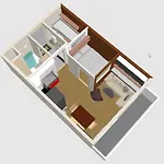 Doté d'un balcon et d'un vestiaire, le design intérieur est complété par des fenêtres insonorisées, ainsi que par une TV à écran plat avec des chaînes satellite. Les équipements de sécurité dans les chambres comprennent des détecteurs de fumée. La salle de bain est équipée des toilettes séparées et une baignoire. Un sèche-cheveux sont également présents dans la salle de bain.